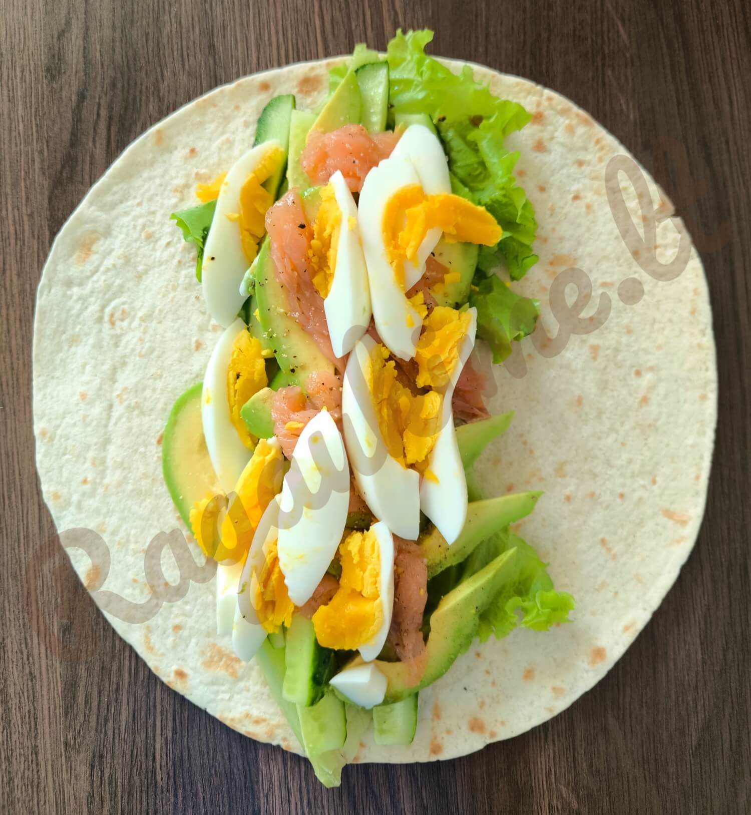 Lavašo suktinukai su lašiša, kiaušiniu ir avokadu